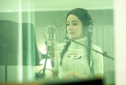 迪丽热巴工作室在个人社交平台发布了一组迪丽热巴录制节目的照片...