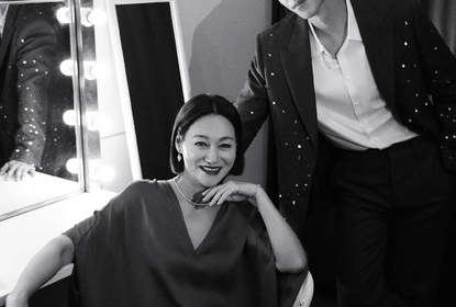 舒淇拍摄杂志的时尚大片被曝光,照片中她身着红色菱格夹克外套,...
