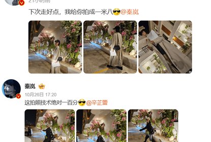 辛芷蕾秦岚发文互动,晒出二人街头互拍照片,二人拍照各显神通,...