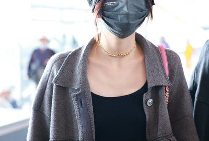 北京,演员张子枫结束巴黎时装周行程现身北京首都机场,冷帽配夹...
