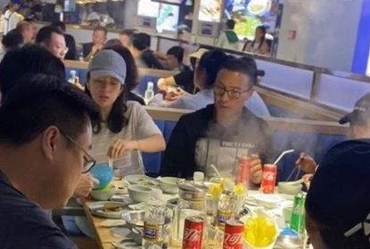 有网友拍到章子怡和汪峰全家及几位亲友在海南吃火锅,打扮低调一...