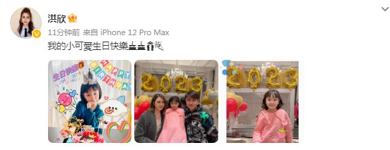 洪欣发博晒出一家三口照片为女儿庆生,照片中一家三口其乐融融,...
