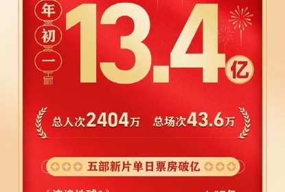 据灯塔专业版数据,兔年大年初一(1月22日)总票房13.4亿,...