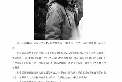 1月23日,付宁导演治丧委员会发布讣告,“著名影视编剧、导演付宁...