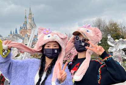 刘诗诗微博晒出与何蓝逗游玩迪士尼的美照,美女们头戴玲娜贝儿头...
