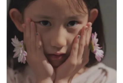 孙莉分享小女儿的近照,妹妹披散着齐肩发,涂了指甲油,双手托腮...