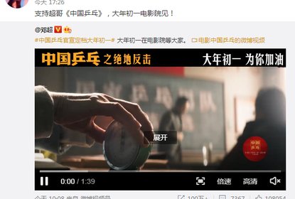 邓超新电影《中国乒乓》官宣定档大年初一上映,迪丽热巴、杨紫、...