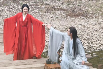 赵丽颖和林更新《与凤行》最新路透花絮图曝光。赵丽颖一身红衣,...