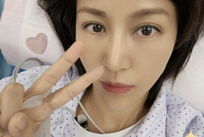鲍蕾在社交平台上分享了一张躺在病床上的自拍照,虽然比着剪刀手...