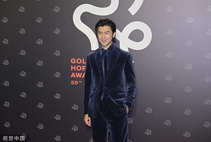 陈柏霖蓝丝绒西装造型亮相第59届中国台湾电影金马奖颁奖礼红毯,...