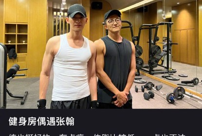 有网友晒出在健身房偶遇张翰的合照,同时还夸对方:“练挺好的,...