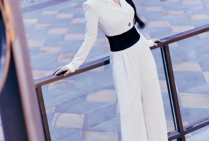 杨紫最新造型释出。写真中,她身穿白色西装,黑色腰带凸显好身材...