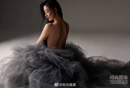一组张天爱的大片曝光,图中,张天爱大方秀出香肩美背,侧脸优越...