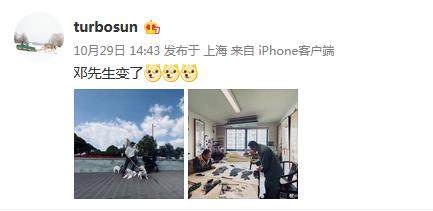 孙俪微博晒出邓超推婴儿车遛狗及练毛笔字的照片,表示“邓先生变...