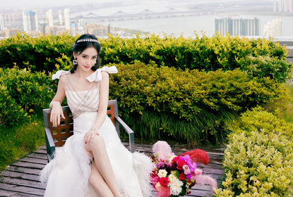工作室在微博上分享杨颖出席活动的造型写真,照片中的杨颖身穿白...