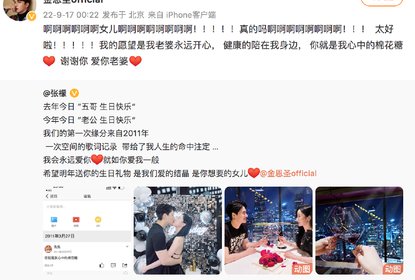 小五金恩圣的生日,老婆张檬卡点为他庆生,并发文:“去年今日五...