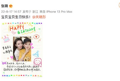 张萌在微博晒出合照为关晓彤庆祝25岁生日,并寄语:“生日快乐我...