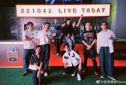 欧阳娜娜在微博晒出一组与好友在自己的跨界艺术展上的合照表示感...