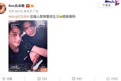 吴卓羲的生日,他在微博晒出和友人的合照,并发文称:“这个人跟...