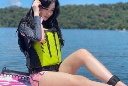 小S二女儿Lily在社交平台分享玩桨板近照,照片中她时而站立时而...