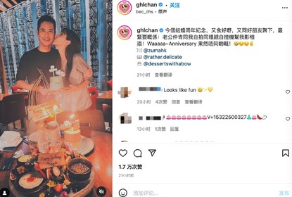 近日,陈凯琳分享与郑嘉颖合照庆祝结婚四周年,照片中陈凯琳亲吻...