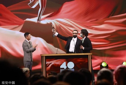 张家辉17日现身第40届香港电影金像奖颁奖典礼,为颁奖礼的影...