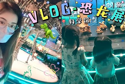 郭富城娇妻方媛微博分享带着两个孩子去看恐龙展vlog,两个孩子头...
