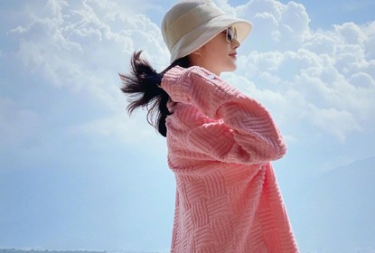景甜一早便分享了看海18宫格。照片中,景甜身穿粉色甜美外套,置...