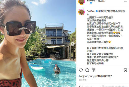 吴速玲在社交平台上分享带儿女度假的照片。配文称带Joe和Grace去...