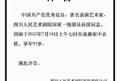 红星新闻记者获悉,国家一级演员,四川人艺艺术家孙滨去世,...
