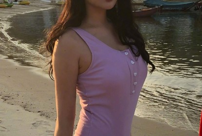 徐冬冬在微博上晒出一组随拍照。照片中,她身穿紫色泳衣,微卷长...