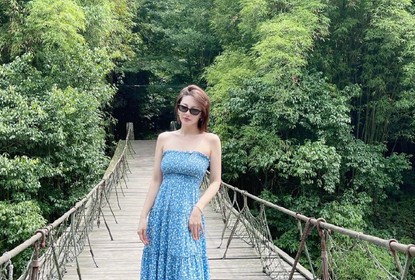 张雨绮晒游客照,照片中她穿人字拖、碎花连衣裙休闲舒适。美女和...