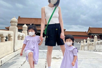 李亚男晒出“带着宝贝们故宫打卡”的照片,李亚男一身休闲装扮,俩...