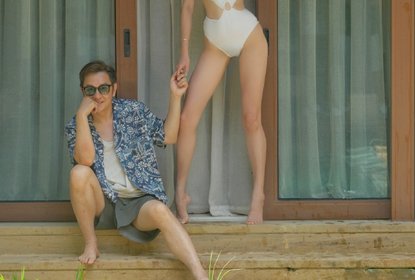 蒋丽莎在微博晒出与陈浩民合照庆祝结婚11周年,照片中二人在泳池...