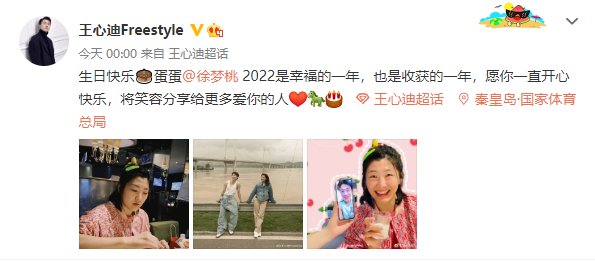 徐梦桃生日,王心迪卡零点为妻子庆生,表示“2022是幸福的一年,...
