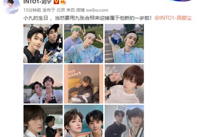 INTO1成员高卿尘生日,刘宇在微博晒九宫格合照为他庆生:“小九的...