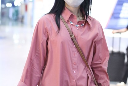 张婧仪现身首都机场。照片中,她身穿粉色衬衫搭配灰色短裤甜美休...