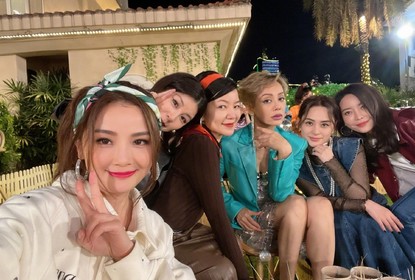 阿雅在微博分享一组与《乘风破浪》宁静、twins、许茹芸、于文文...