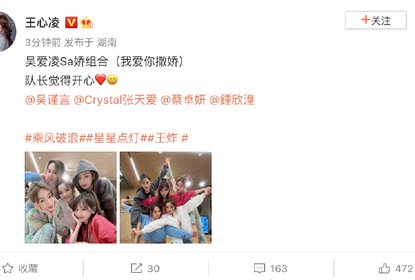 王心凌在微博晒出和姐姐们的合照,并透露自己新组合的名字叫做“...