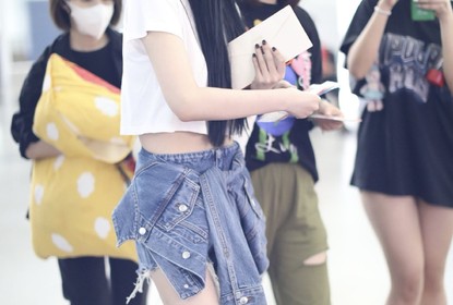 徐梦洁现身北京机场。照片中,她身穿蓝色衬衫内搭V领白T简约清爽...