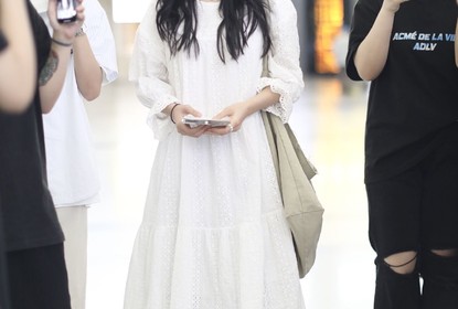 章若楠现身长沙机场。照片中,她身穿白色法式裙与牛仔裤混搭十分...