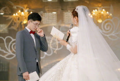 许静韬、梅杰婚礼现场照片浪漫来袭,梅杰一袭银白色婚纱与许静韬...
