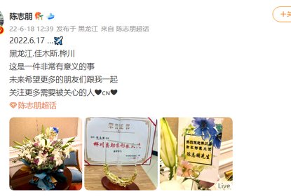 志朋晒出自己获得的桦川县助农形象大使荣誉证书,并发博写道:“...