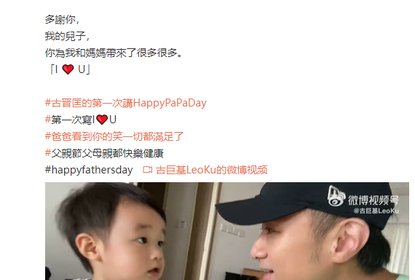 古巨基在微博晒出儿子送自己父亲节礼物的视频,视频中展示了儿子...
