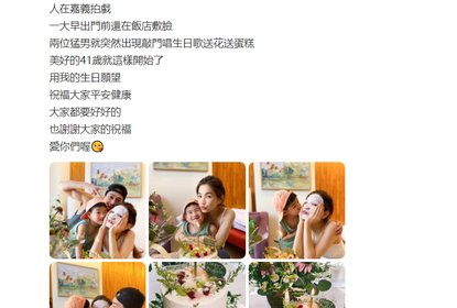 Ella41岁生日,她在微博晒出一家合照,写道:“人在嘉义拍戏,一...