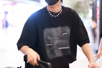 段星星从北京机场出发。照片中,他全黑look穿搭酷帅十足,手推行...