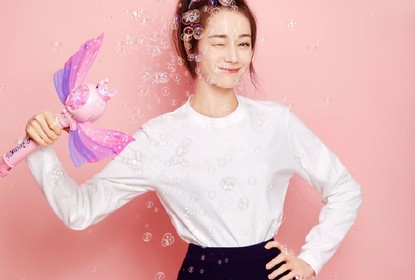 迪丽热巴工作室分享了三张生日库存照,她一身青春装扮,玩泡泡机...