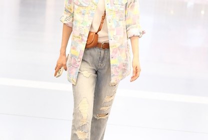 北京,刘敏涛戴鸭舌帽,穿白色T恤搭配牛仔裤与印花衬衫休闲亮相...