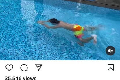 林志颖在社交平台晒了一段大儿子kimi游泳的视频,并配:“越来越...