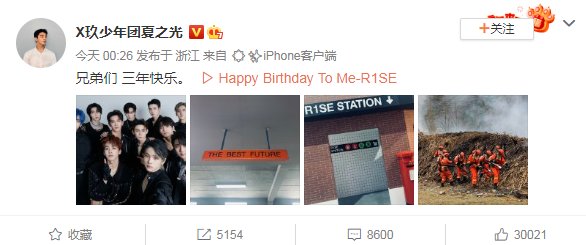 R1SE成团三周年纪念,夏之光发博晒出成员合影,以及几张有寓意的...
